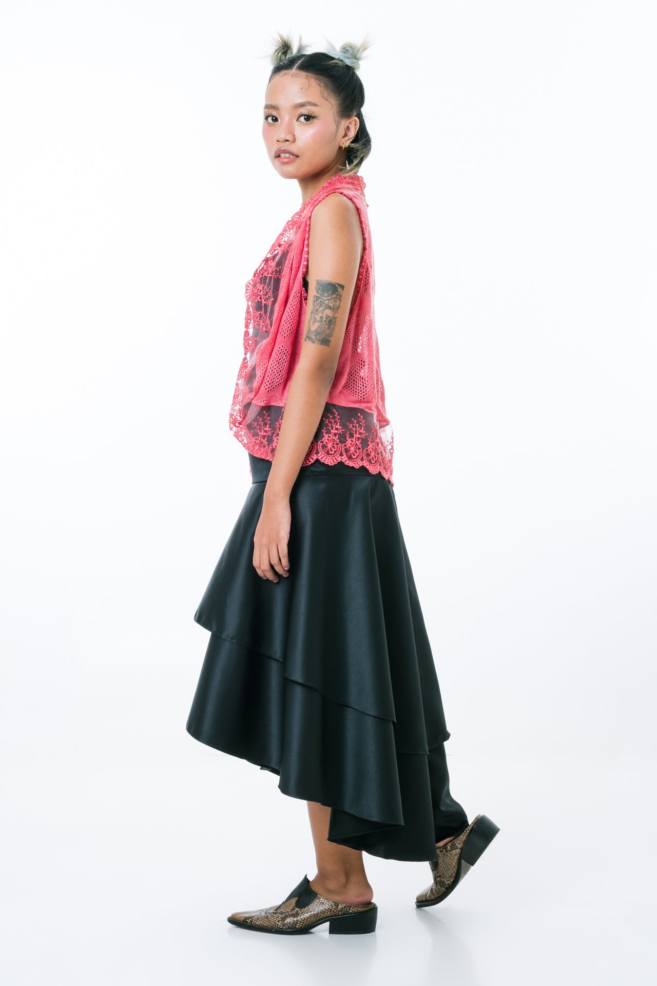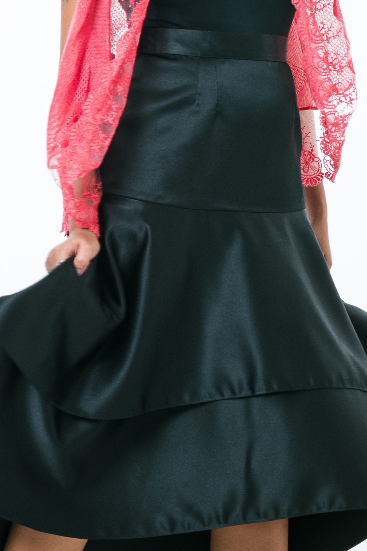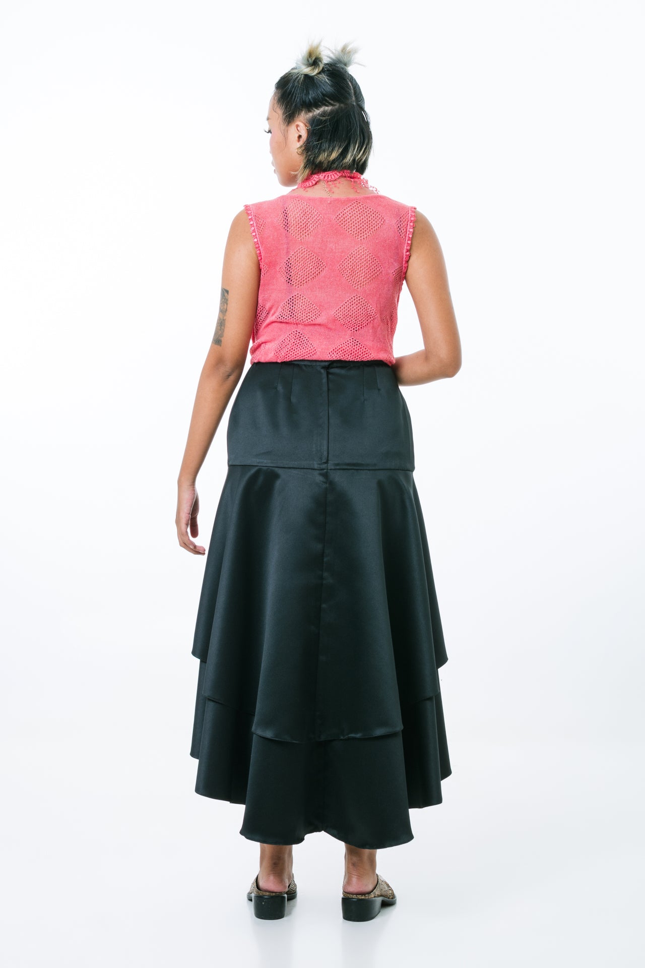 Introducing the Ava Skirt, an elegant, sophisticated statement piece crafted from luxurious Gazar fabric. Its trumpet mid-length cut creates a dramatic silhouette. With an asymmetrical cut and layering that will gracefully move as you walk. Be the envy of your next special event in the Ava Skirt.