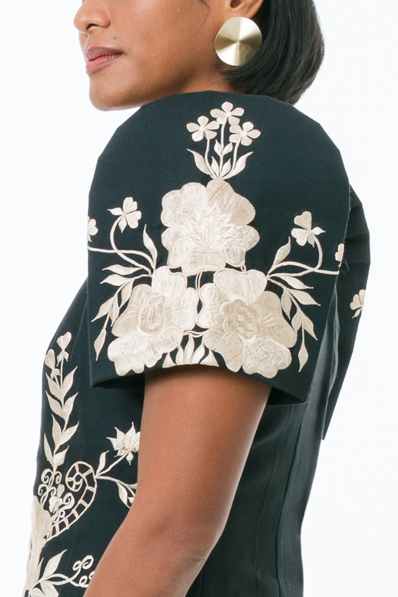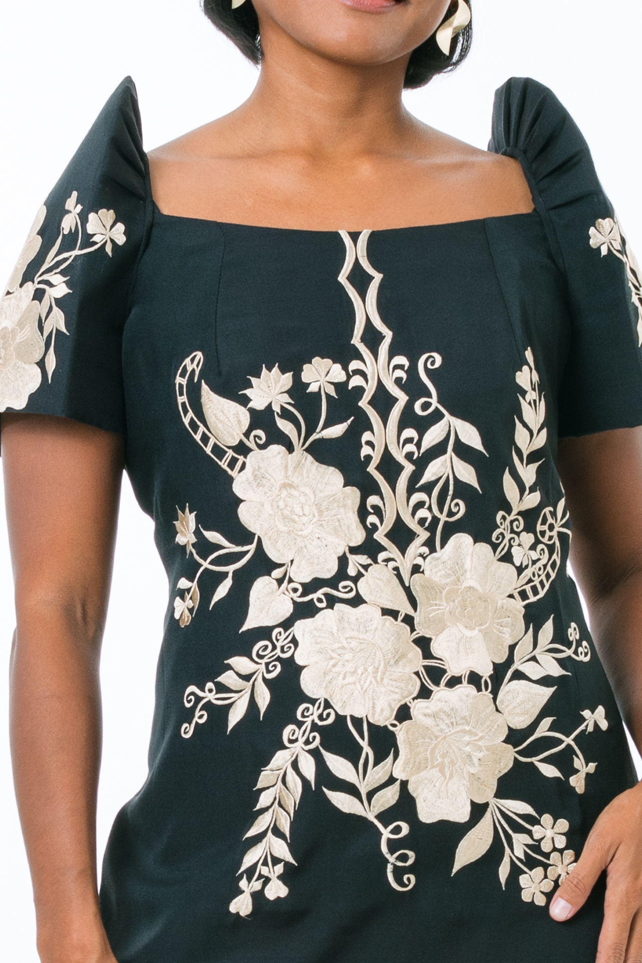 This Clara Filipiniana dress is beautifully crafted with Italian linen that emanates elegance and sophistication. Featuring an above-the-knee cut, bateau neckline, and butterfly sleeves, the dress is further decked out with delicate floral embroidery on the front and sleeves for an eye-catching, distinct look. Perfect for special occasions, this superior-quality Filipiniana dress will elevate your style and capture the hearts of all.