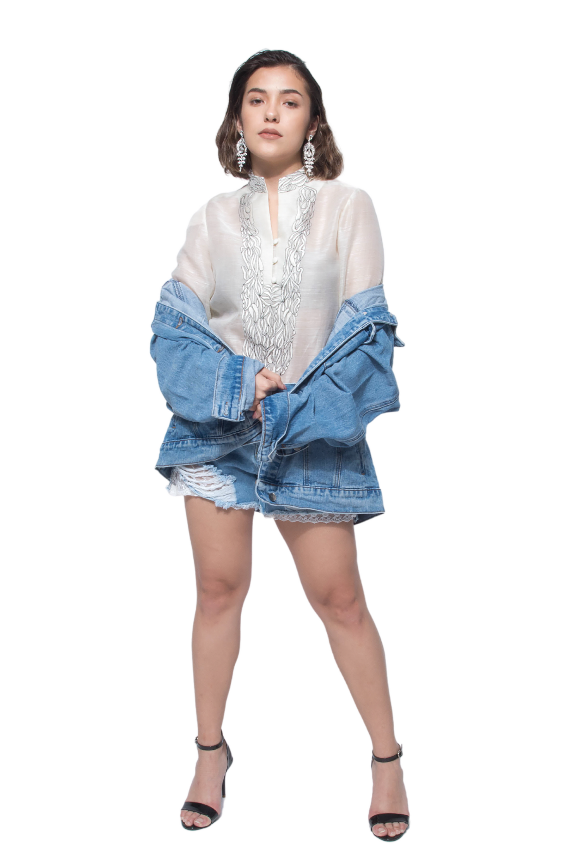 Take on the day with the Consuelo Lady Barong made from Hinabue fabric! The unique blend of Piña and cotton fiber provides comfort and strength. Featuring bold leaf embroidery, a swan-neck design, It's rock this piece for both casual and semi-casual events. Time to make a statement!