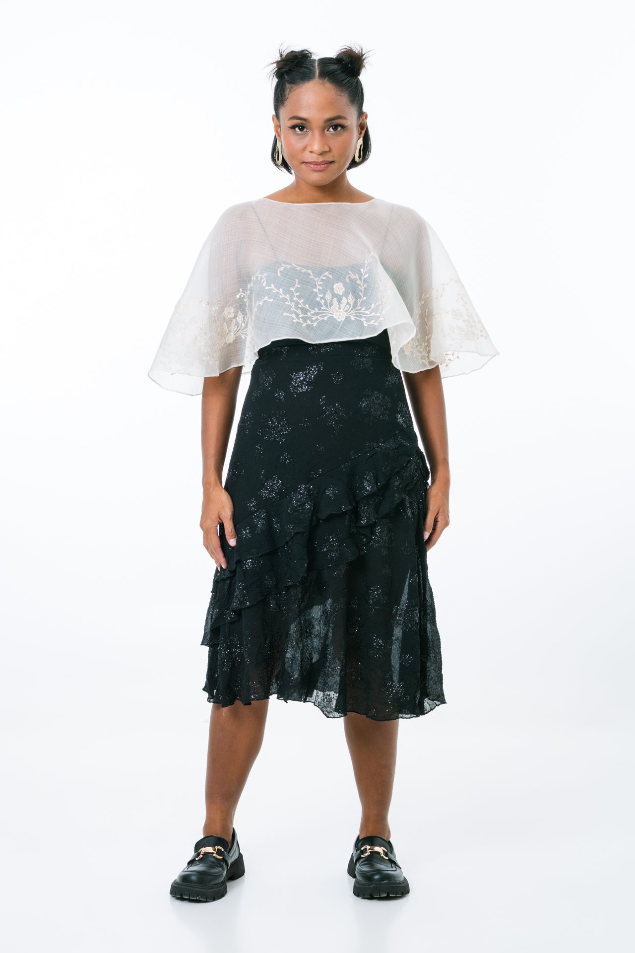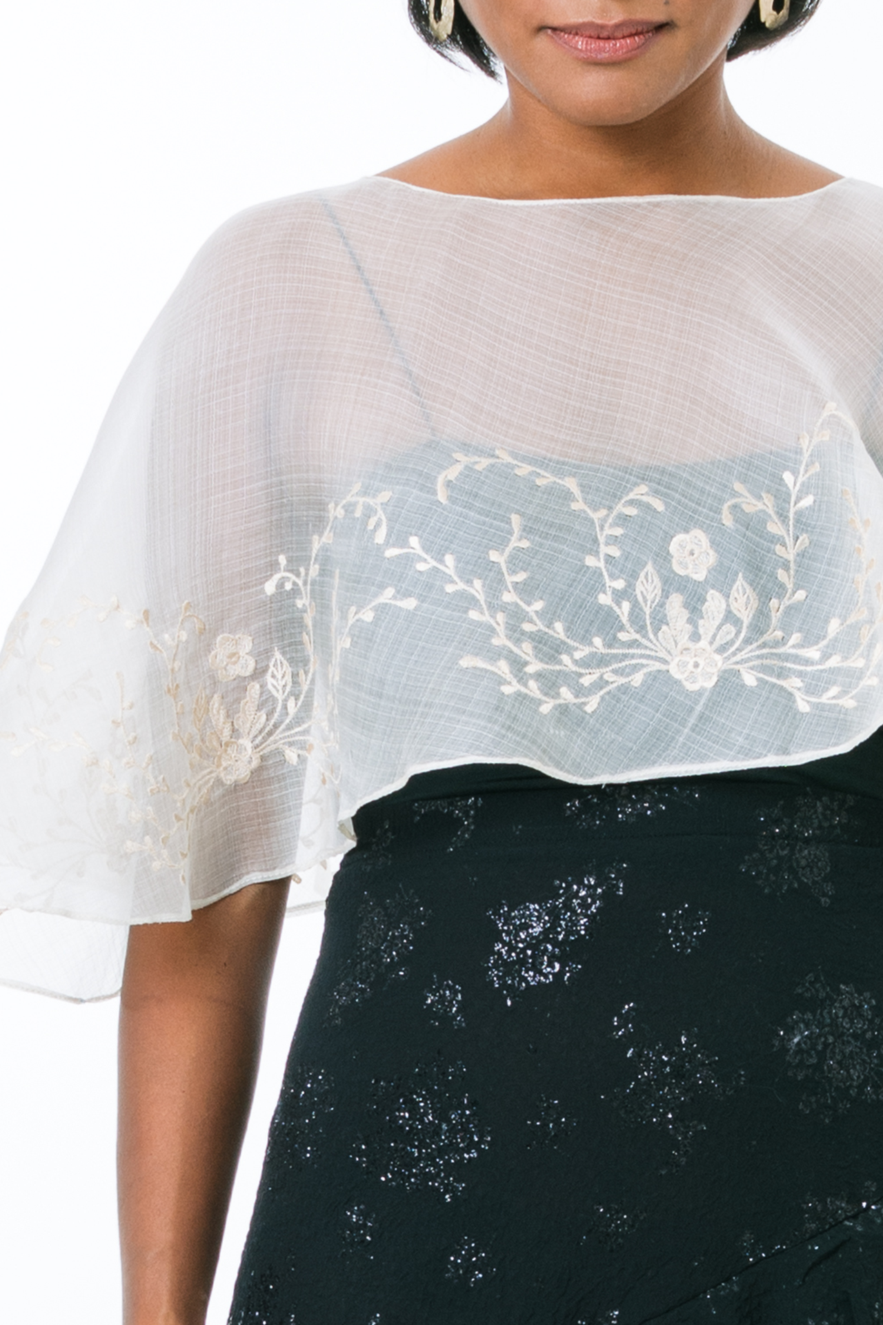 Stay cozy and stylish in the Decca Poncho! Soft cocoon fabric provides warmth and comfort, while the cropped, boat neckline keeps you looking chic. Add any outfit a pop of Filipiniana w/ the intricate embroidery in the front, side, and back. Girls, grab a Decca Poncho and glide into the season with ease!