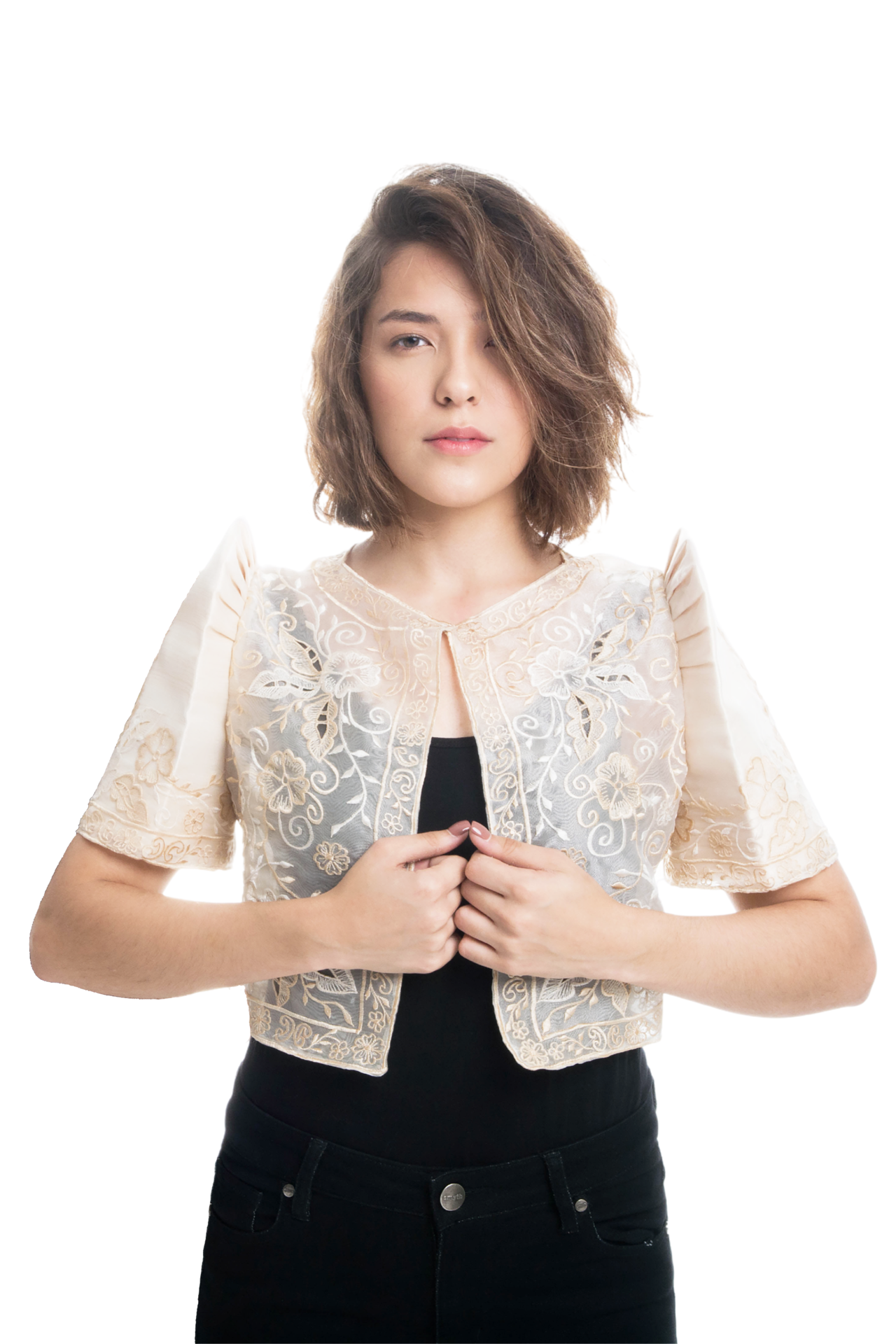 Feel elegant and stylish with the Susana Bolero in Beige. Its square cut and butterfly sleeves add a modern twist to the traditional Filipiniana design. The full embroidery on the body and sleeves make it a best-selling piece. Made from organza fabric, it's a must-have for any special occasion.