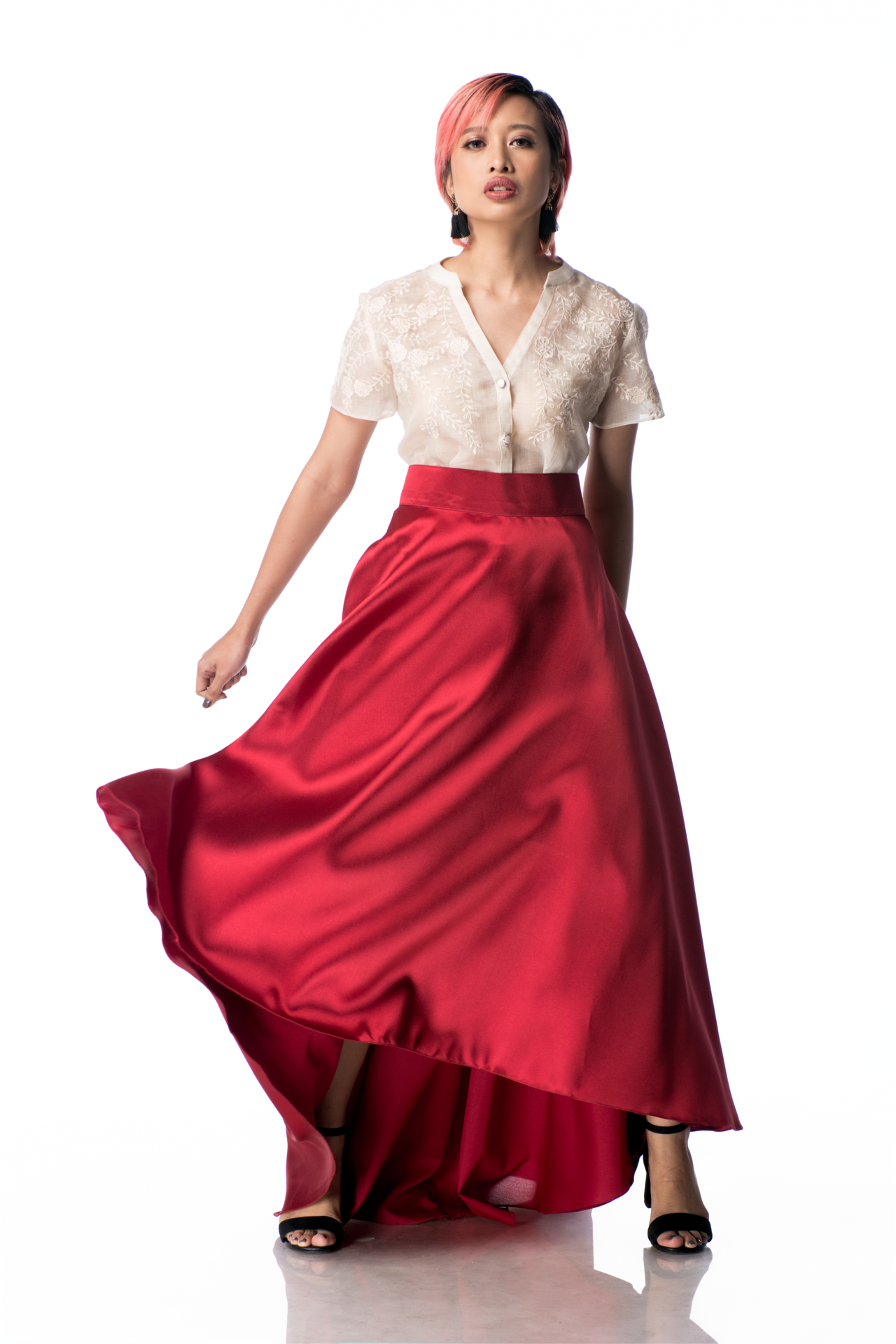 Get ready to make a statement with the Dame Skirt in Gazar! Designed for the risk-taker, this piece features an A-line mullet cut with a stylish back closure. Made from luxurious silk gazar, this fabric is perfect for those grand celebrations, making you stand out with its smooth texture and crisp, matter finish.