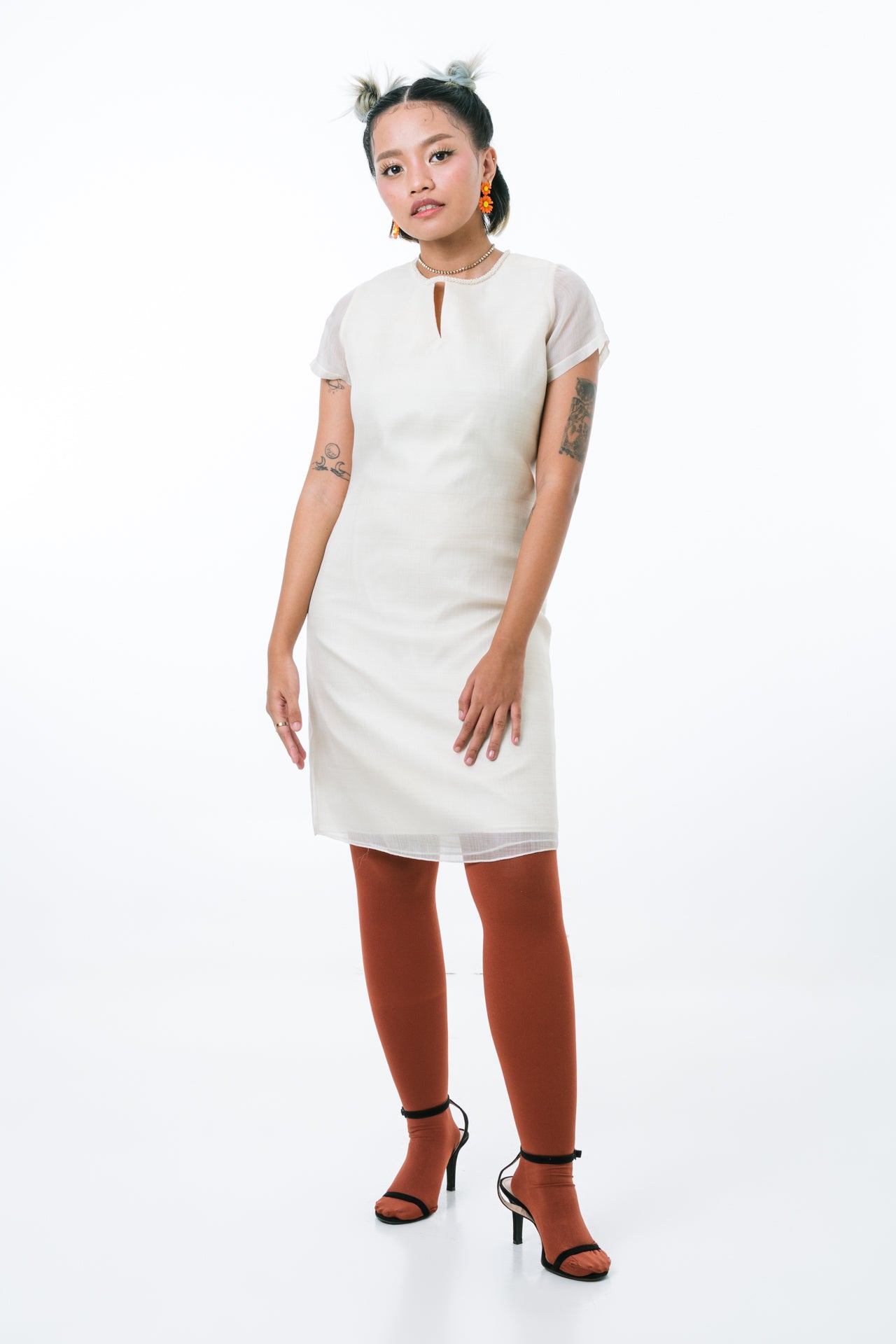 Look your best in the Eljane Dress by dressing up in this above the knee sheath dress with a keyhole neckline. Crafted in lightweight organza, this dress exudes a chic and easy aura, perfect for any formal occasion.