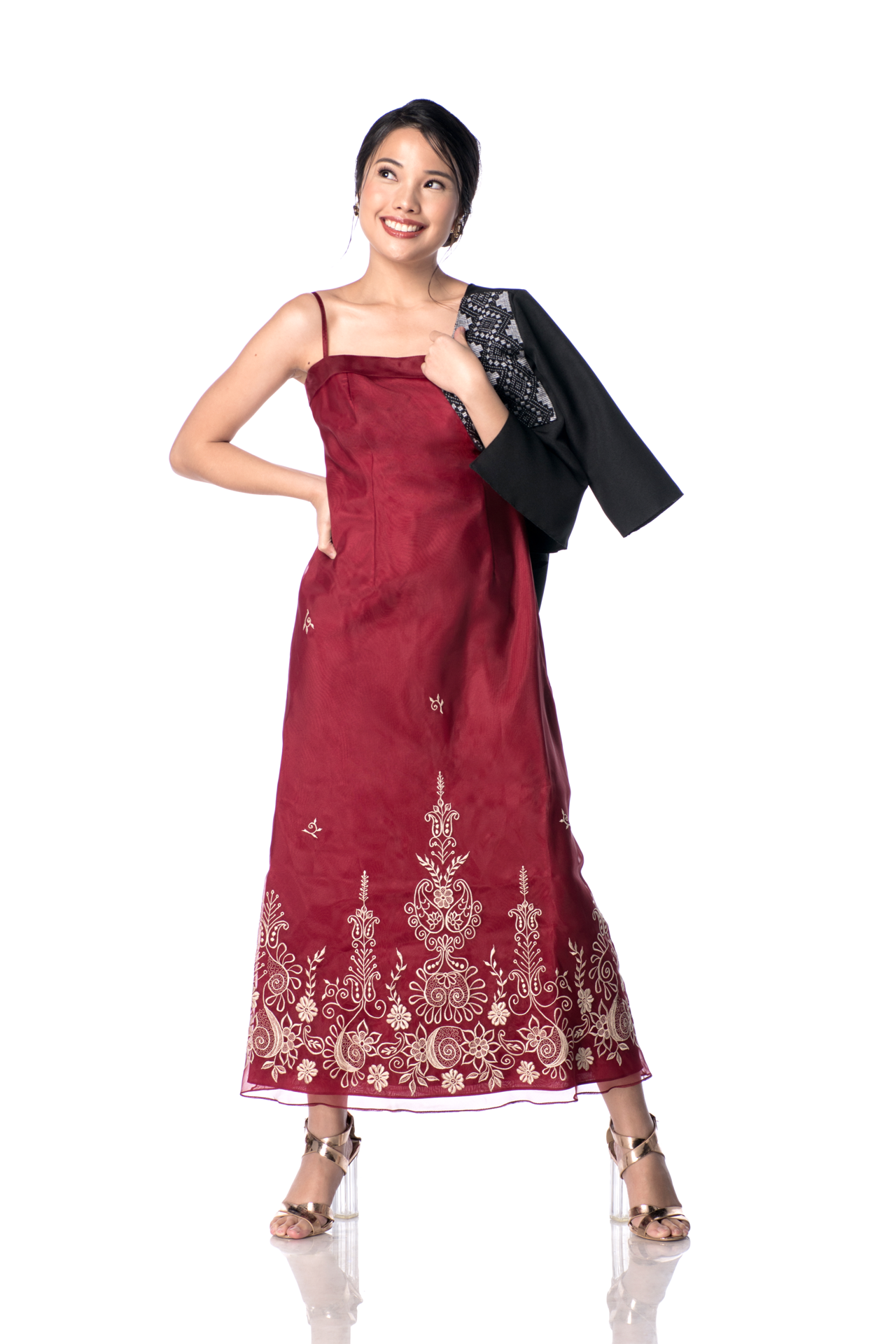 Boost your formal wear game with the Hakami Gown. Designed with spaghetti straps and stunning floral and brocade embroidery on the hem, this gown is made from organza fabric - a perfect blend of polyester and silk. Experience the blend of aesthetics, durability, and comfort in one stunning piece!