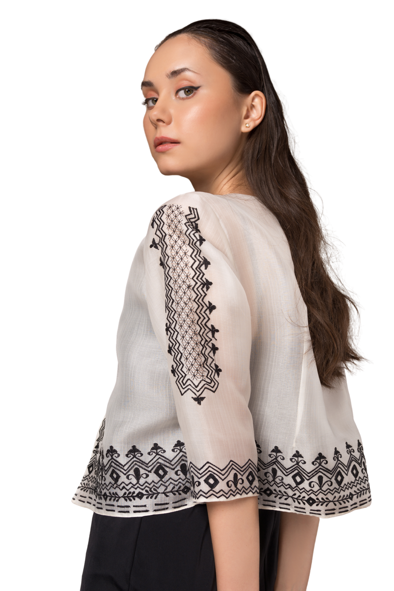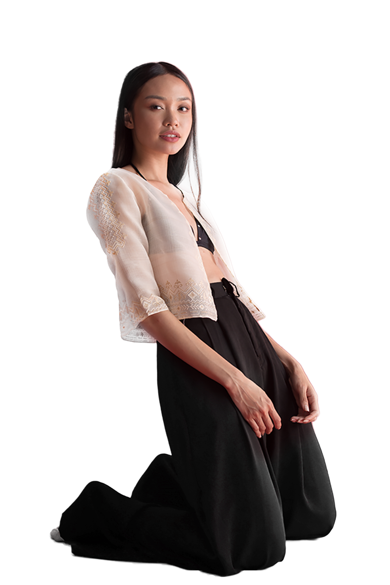 Add a touch of culture to your wardrobe with our Hazel Blazer. Versatile for formal or casual occasions, this blazer boasts elegant embroidery inspired by the intricate Kalinga tattoos. Crafted from luxurious cocoon silk, it exudes a sophisticated and exclusive look.