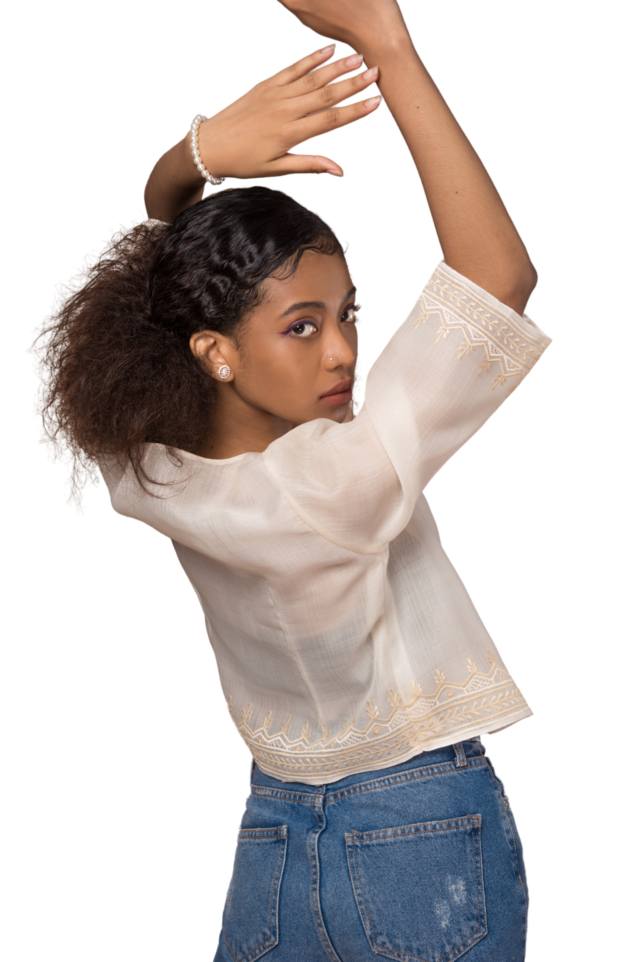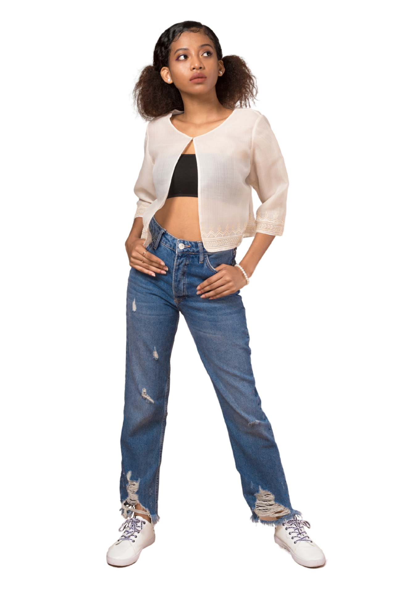 The Hillary Blazer is the ultimate versatile piece for all occasions - formal or casual! Made from luxurious cocoon silk, this blazer features a front hook closure and a chic cropped silhouette. But it's the monotone embroidery details on the hem that truly set it apart. A must-have for any wardrobe!