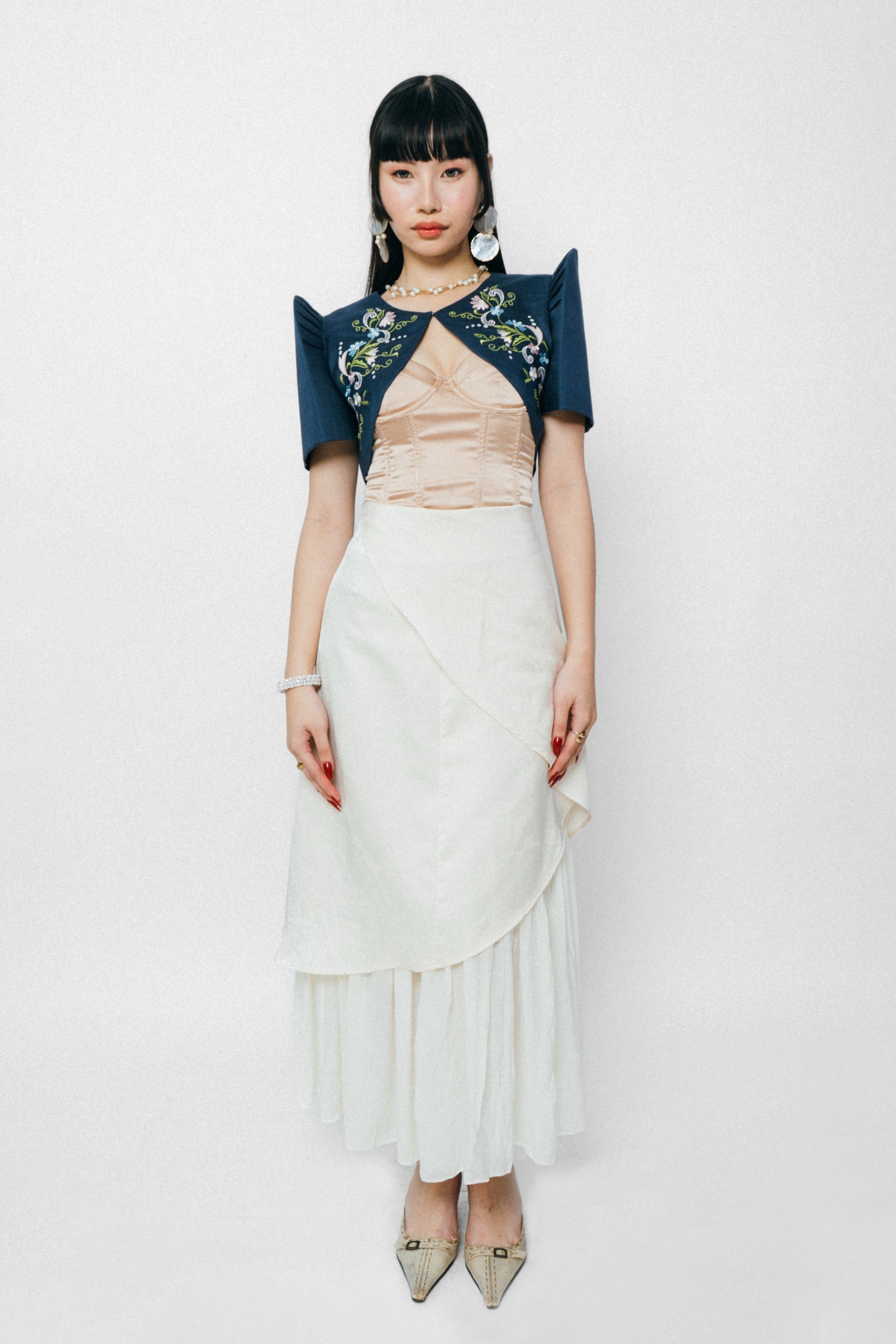 Adorn yourself in a timeless classic with the Iris Filipiniana Bolero. Made from luxurious Italian linen, this bolero features a beautiful printed floral embroidery that is sure to make a statement.