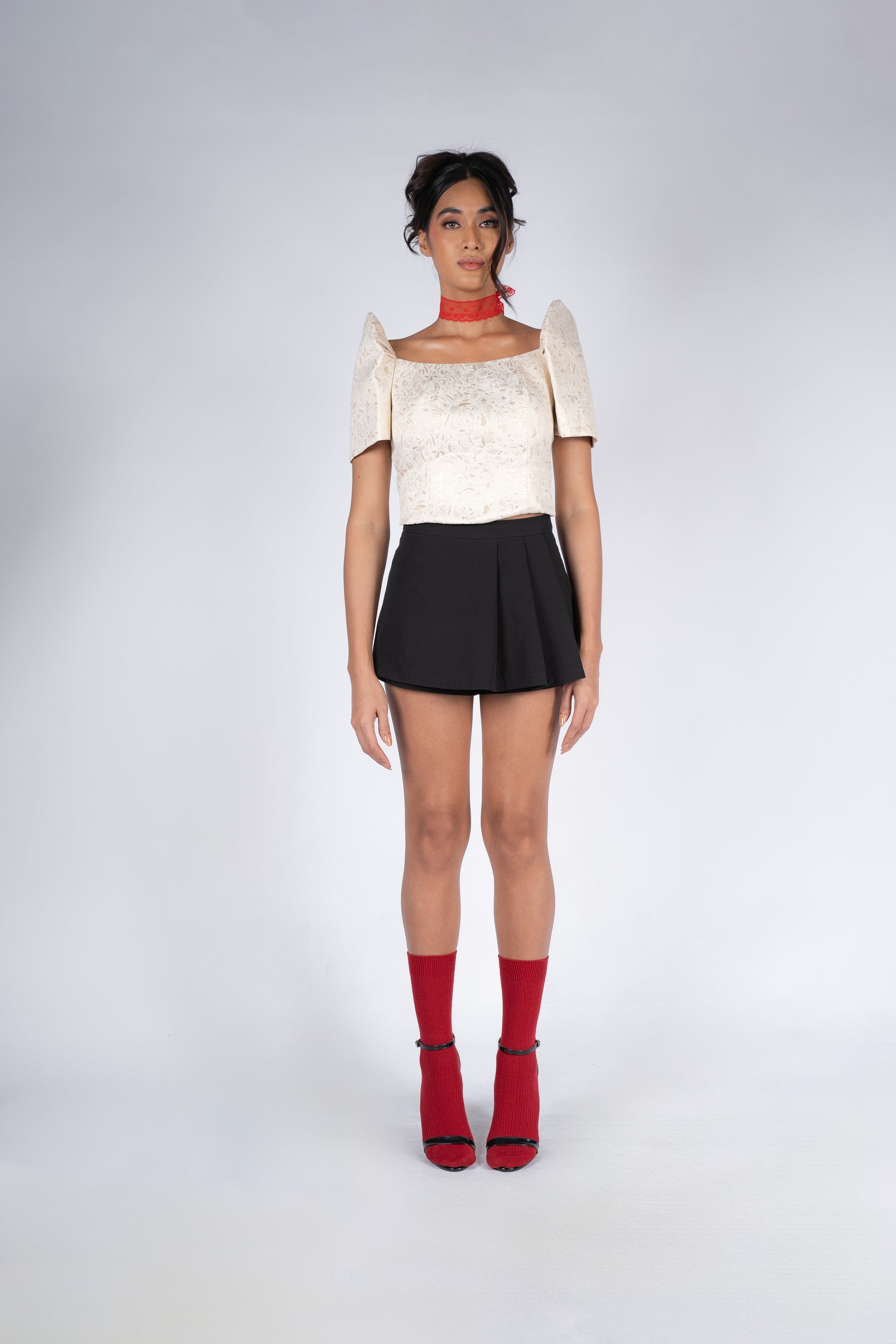 Unleash your daring side with the Lila Filipiniana Blouse. Designed with a square cut neckline and crafted from luxurious jacquard fabric, this blouse exudes sophistication and elegance. Perfect for any occasion, it's a must-have addition to your wardrobe.