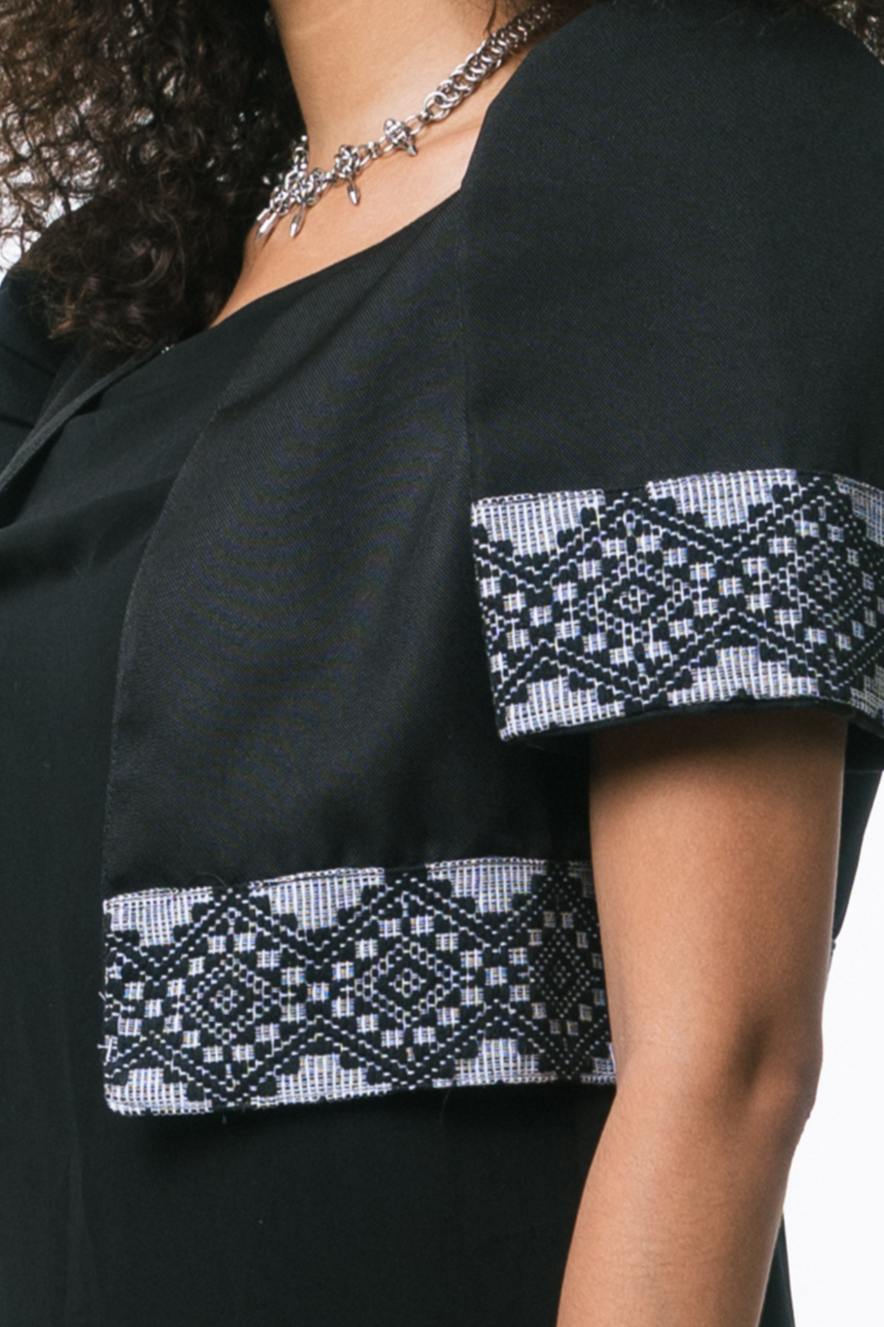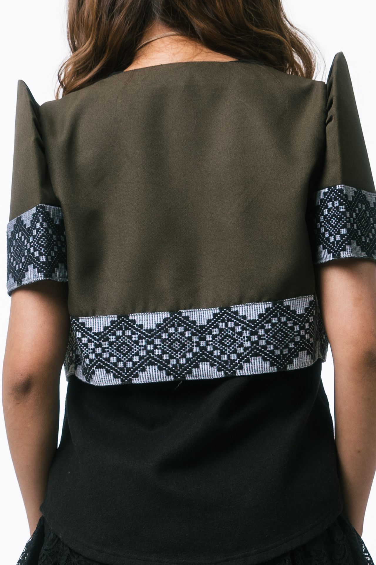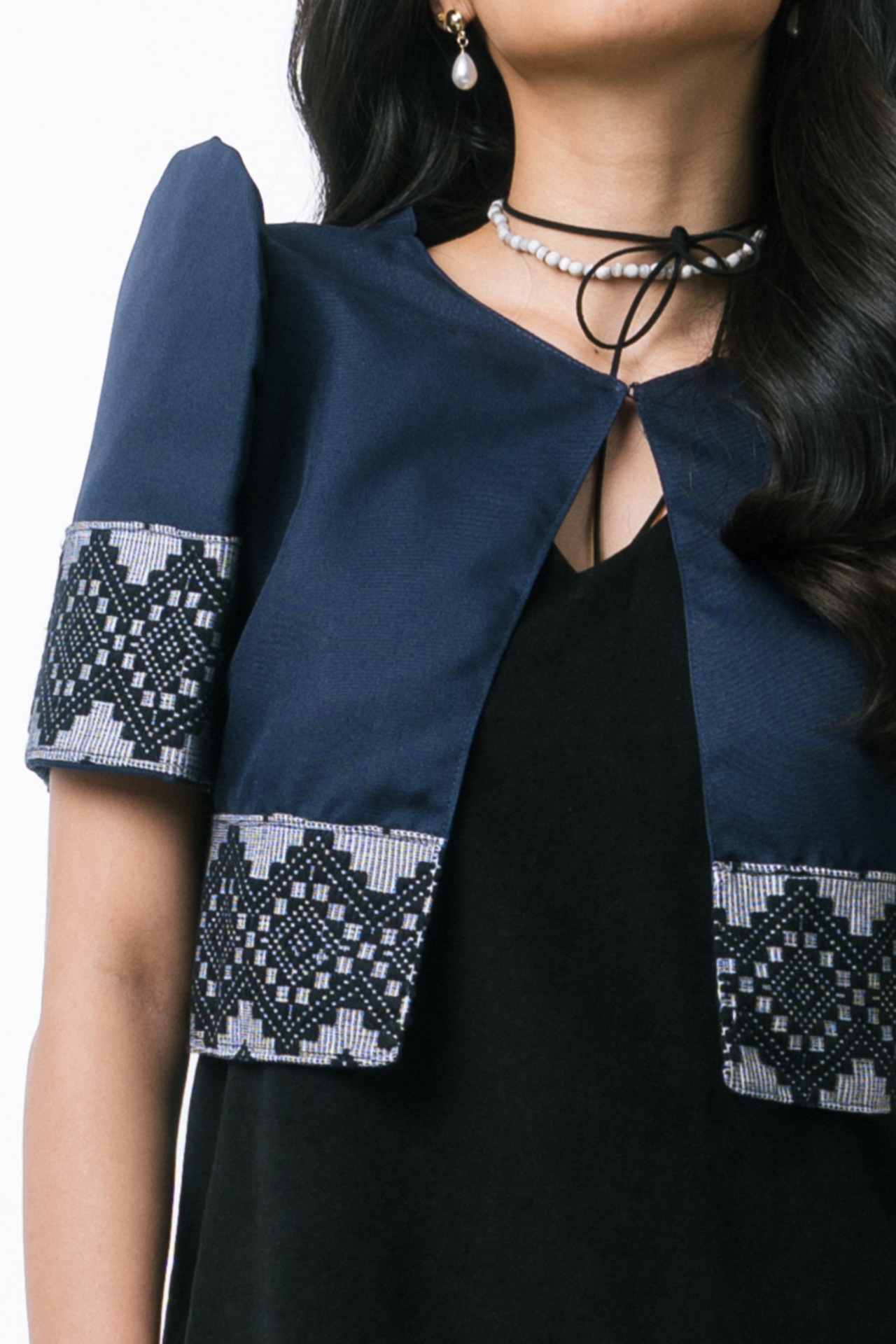 Introducing the Mahari Bolero - proudly made from locally-sourced Habi cotton fibers by Ilocano weavers. Its square cut design features intricate Kutsara embroidery inspired by the beauty of nature, adding a touch of modern Filipiniana glamour to your wardrobe.