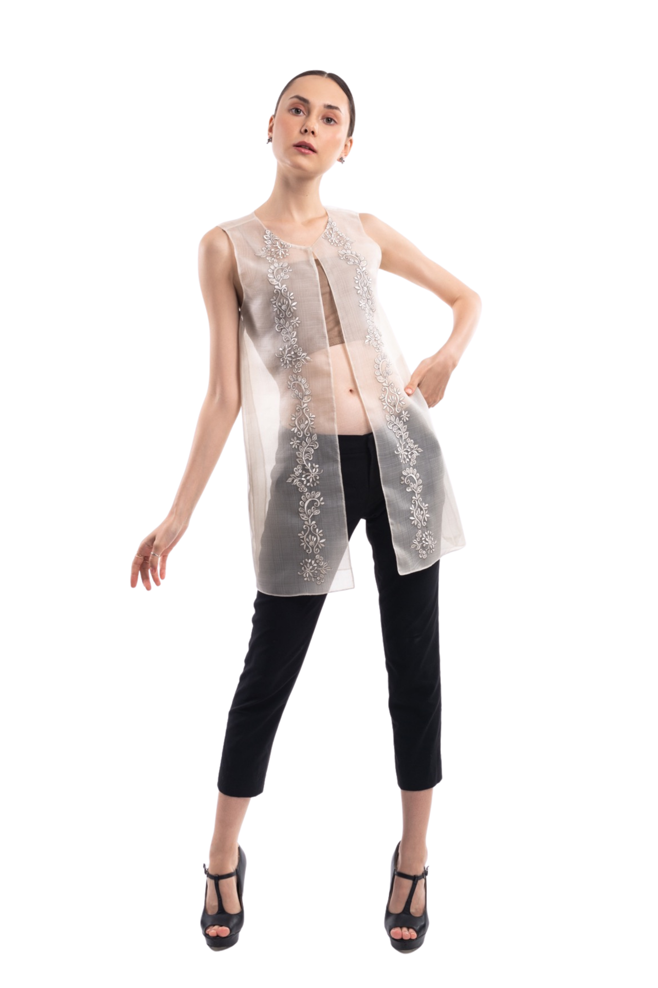Get ready to make a statement with the Mateo Blazer. This sleeveless blazer features modern Filipiniana design with delicate floral embroidery on the front. Made from Cocoon silk, it's lightweight and easy to style for any occasion, from the beach to the party. Upgrade your wardrobe with this unique and versatile piece!