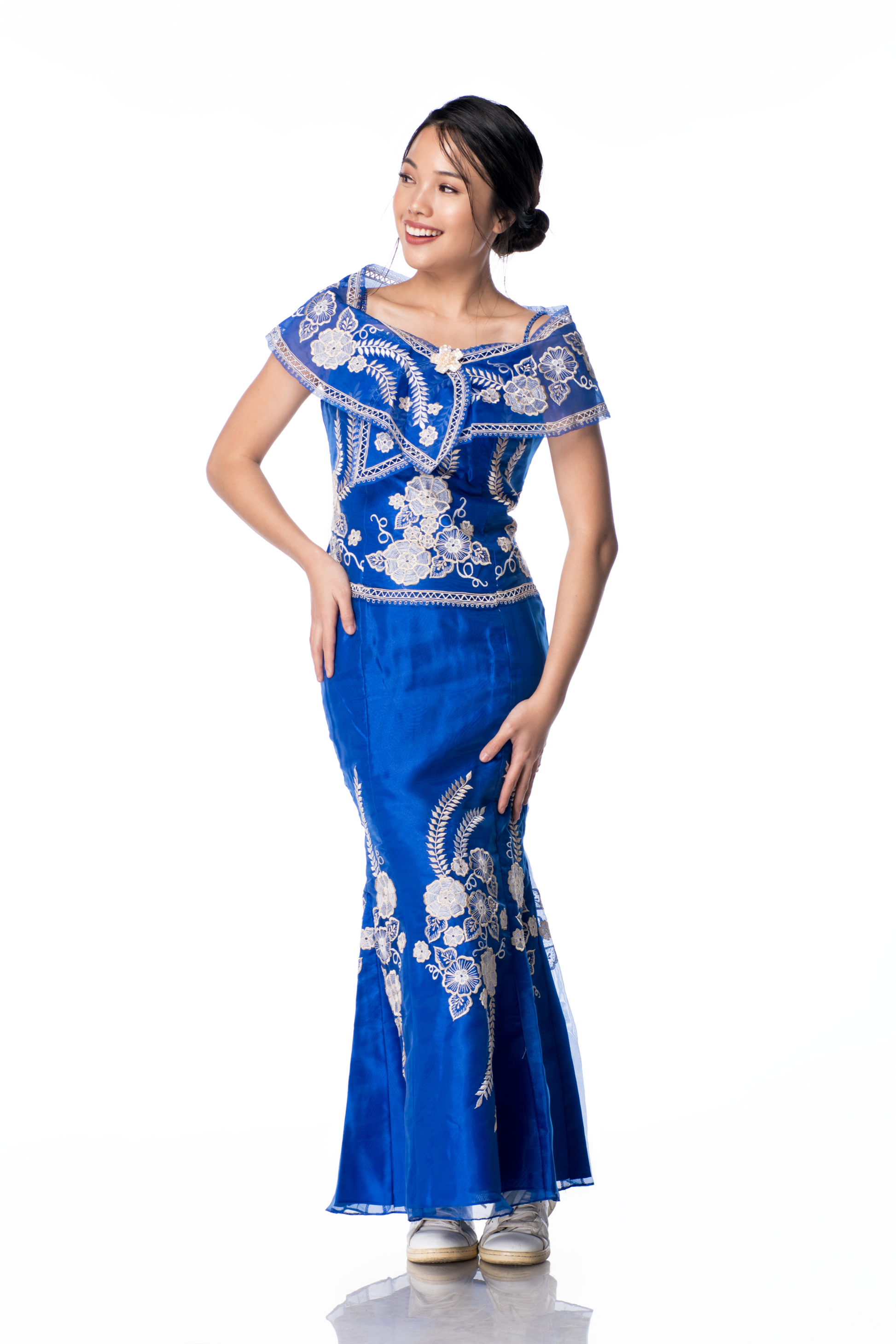 Elevate your formal wear game with the Pia Blouse & Skirt! Featuring lush brocade of floral embroidery, a bias cut skirt, and an off shoulder design, this Filipiniana gown exudes elegance. Complete with a faux alampay component, it's perfect for special occasions. Made from high-quality organza fabric for a luxurious touch.