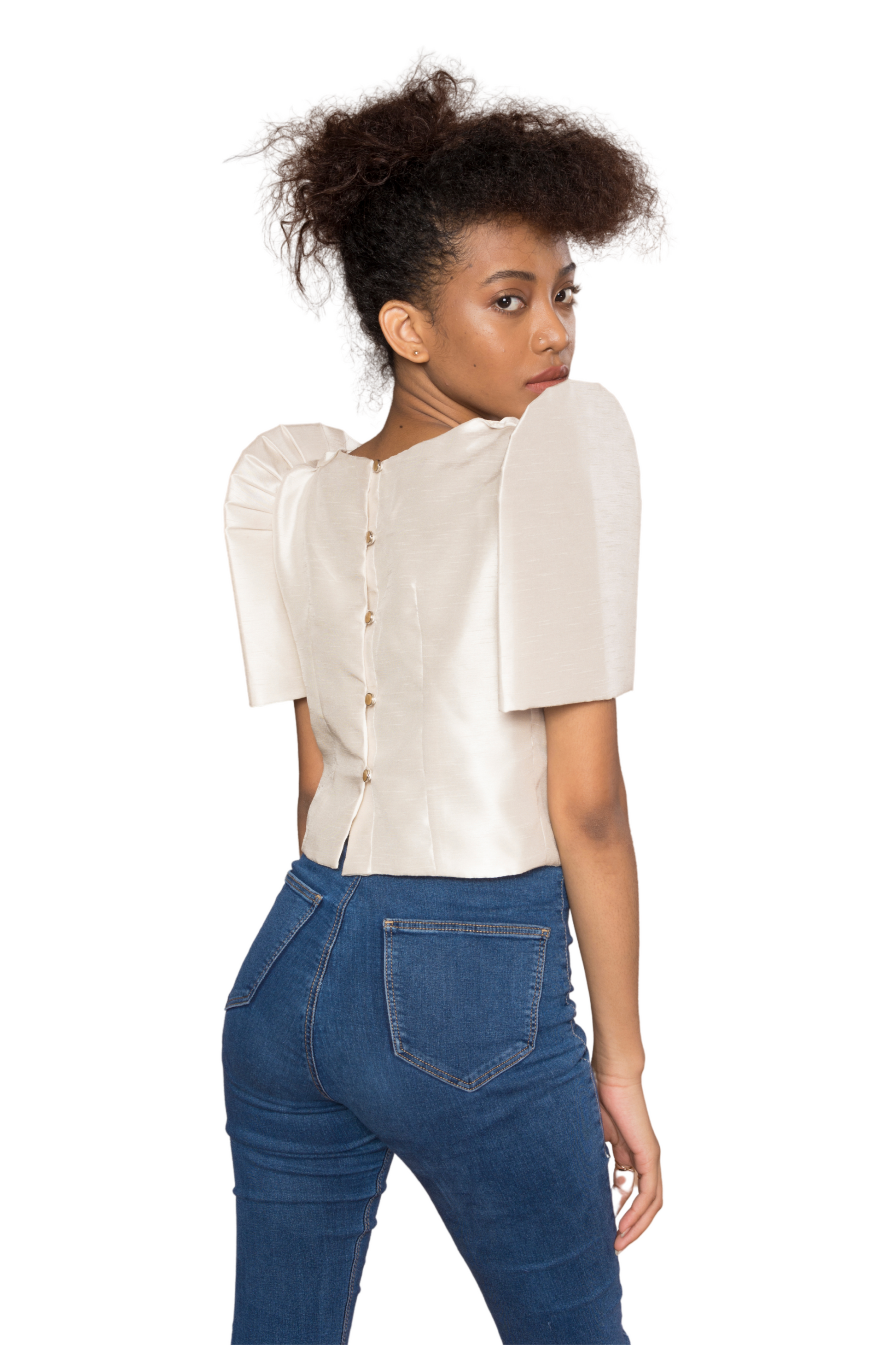 Unleash your bold and adventurous side with the Ximena Blouse. This cropped Filipiniana top features a court neckline and butterfly sleeves, creating a dynamic silhouette. Made from shantung textile, this blouse will elevate your style and make you stand out from the crowd.