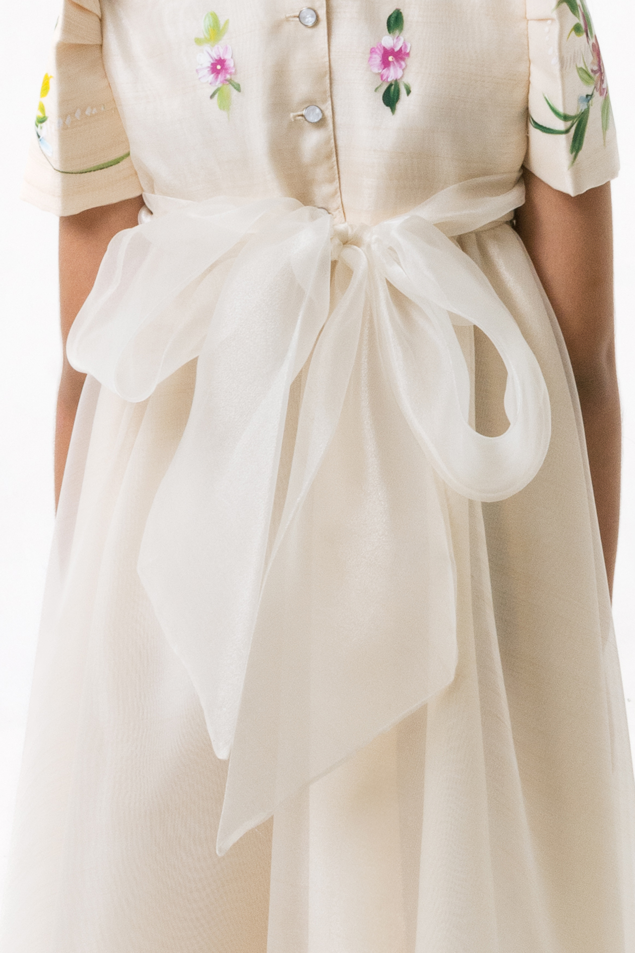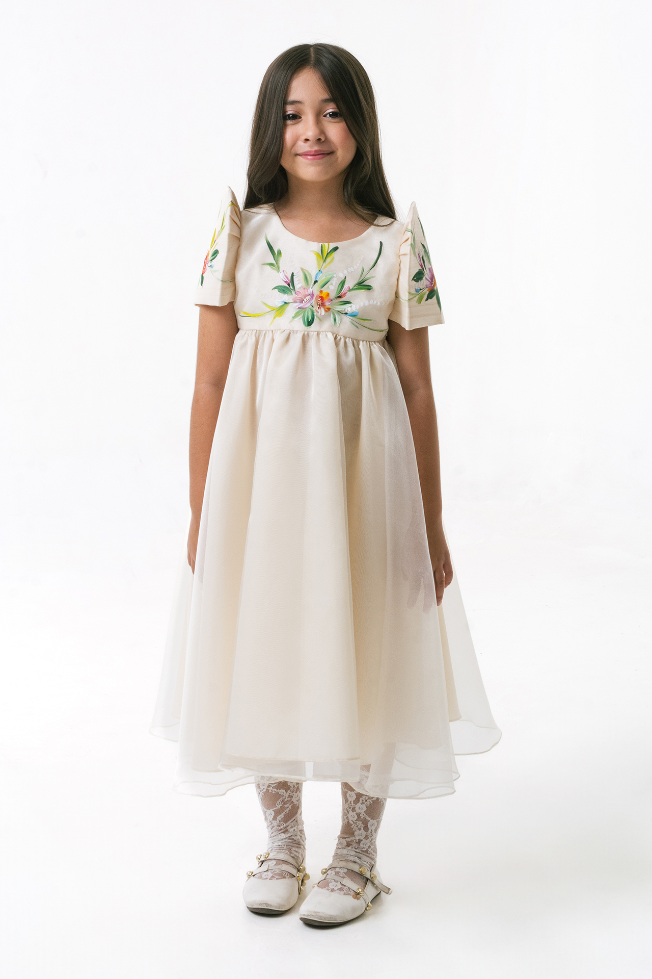 Bring a touch of tradition and elegance to your little one's wardrobe with our Zaira Filipiniana Dress. This ankle-length dress features delicate pleats and beautiful floral embroidery on the front and sleeves. Perfect for special occasions, it's a stylish and comfortable choice for your fashionable child.